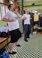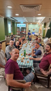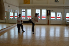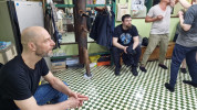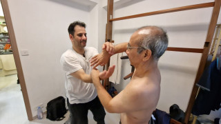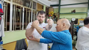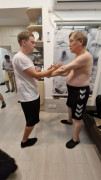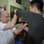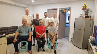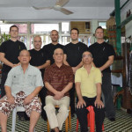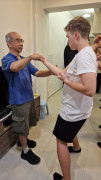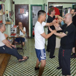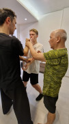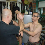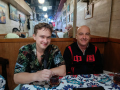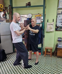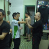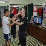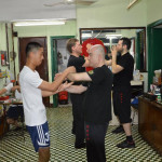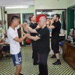 Als wir ankamen, war die Klasse bereits am trainieren. Alle Anwesenden begrüßten uns freundlich, wir konnten uns bei den Meistern vorstellen und verabredeten uns mit ihnen zum Essen nach dem Training. Und so saßen wir wenig später tatsächlich in einem kleinen Restaurant zusammen mit unserem Sifu, Meister Lok Sang und Siba Benny beim Essen. Was für ein erster Tag!