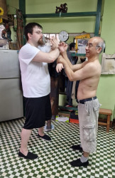 Am Samstag gingen wir dann das erste Mal zu unserem Training. Die familiäre Herzlichkeit dieser Koryphäen war unglaublich beeindruckend. Alle unsere Fragen wurden mit einer selbstverständlichen Freundlichkeit beantwortet und unsere Bewegungen und Positionen korrigiert. Abends trafen wir uns mit den Meistern zum gemeinsamen Begrüßungsessen in einem beliebten Restaurant. Während in steter Folge traditionellen chinesischen Speisen aufgetragen wurden, saßen wir in lockerer Atmosphäre zusammen und unterhielten uns in einer Mischung aus verschiedenen Sprachen mit den Meistern und ihren Ehefrauen. Ab Montag gingen wir dann täglich mit unserem Sifu für einige Stunden zum Trainieren mit den Meistern. Vor dem Training begleiteten wir häufig unserem Sifu beim Spaziergang im Kowloon Park oder gingen alle zusammen frühstücken. Nach dem Training ging es dann regelmäßig in kleine Restaurants zum Essen mit den Meistern. Meister Benny war es dabei sehr wichtig, dass wir das Essen genießen konnten. Er bestellte für uns jedes Mal unterschiedliche Spezialitäten und erkundete sich immer, ob das Essen auch nach unserem Geschmack wäre. Und ich muss sagen, dass das Essen immer wirklich großartig war! Die Tage verflogen wirklich schnell und es gab unglaublich viele starke Eindrücke.