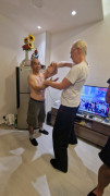 Die Höhepunkte waren natürlich die täglichen Trainingseinheiten, aber auch die Gespräche und Spaziergänge mit meinem Sifu und meinem Bruder Johann. Die gemeinsamen Essen mit den Meistern und die Unterhaltungen mit den Schülern der Klasse aus Hongkong. Und besonders schön war es auch, zum Abschluss eines jeden Tages mit einem Getränk vor ‚Spicy Crabs‘ zu sitzen, die Szenerie auf der Straße zu beobachten und dabei gemeinsam über die Erlebnisse des Tages zu sprechen. Besonders aufregend war auch, dass wir als letzte europäische Gäste in den geschichtsträchtigen Räumen in der Nathan Road trainieren durften. Denn kurz nach unserem Aufenthalt, würde Meister Gong mit seiner Klasse in neue Räumlichkeiten umziehen.